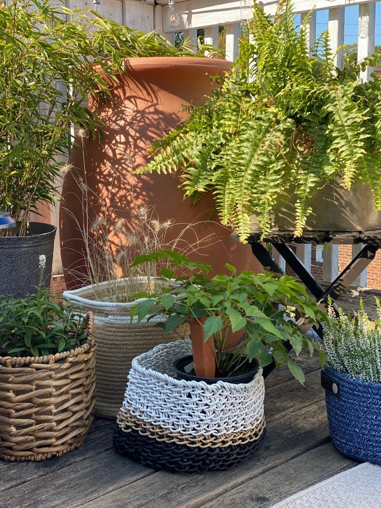 Plant fam 💚🌿 Plants 🌱 are an affordable way to create a calming, peaceful space whether it’s indoors or out. When we decided with the client to add more plants to her deck we knew that it needed to be breezy and not too formal – so we used super-light baskets that would fit with her indoor decor as much as her outdoor decor; these will easily be repurposed and brought inside for the colder months. This deck is right off her loft-like bedroom and has no water source without going down some very steep steps, so we included this garden rain barrel from @wayfaircanada (swipe for pics) – it has an easily accessible spigot on the front for ‘water on tap’ to easily fill a watering can. Lisa’s cat stopped by to check it out as well! 🐾 #deckdesign#jungalow #jungalowstyle #deckrefresh#decklife #moreplantsplease #ladyden #thebeach #goodvibes #beachhouse #coastaldecor #coastalliving #plantsofinstagram #bohodecor#bohostyle #bohoabode #lakelifestyle #styling #stylist #reverieeventdesign #reveriestyledhome